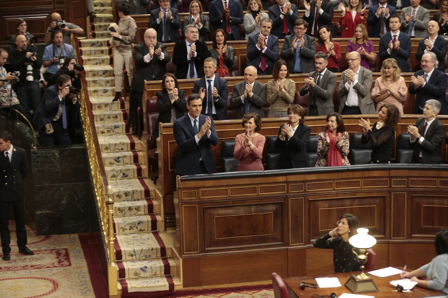 El Plenu del Congresu de los Diputaos otorgó la confianza a Pedro Sánchez pa ser investíu presidente del Gobiernu. El candidatu a la reelección algamó la mayoría simple na segunda votación d’esta sesión de investidura. El socialista recibió 167 votos a favor, 165 en contra y 18 astenciones. A los votos de PSOE y Xuníes Podemos, formaciones que van formar un gobiernu de coalición, sumáronse los de Más País, Compromís, BNG, Teruel Existe y Nueva Canarias y PNV. En contra votaron los 165 diputaos del PP, Vox, Ciudadanos, Junts per Catalunya, Coalición Canaria, PRC, Navarra+, CUP y Foru Asturies. ERC y EH Bildu astuviéronse.
