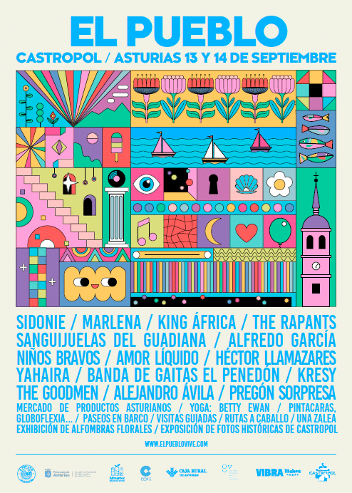 • Conciertos de primer nivel, con artistes como Sidonie, cabeza de cartelu, al pie de Marlena, King África, The Rapants, Sangrixueles del Guadiana, Neños Bravos, Amor Líquido, The Goodmen, Alfredo García, La Banda de Gaites El Penedón, y una potente sesión electrónica con Héctor Llamazares, Yahaira, Kresy y Alejandro Ávila.