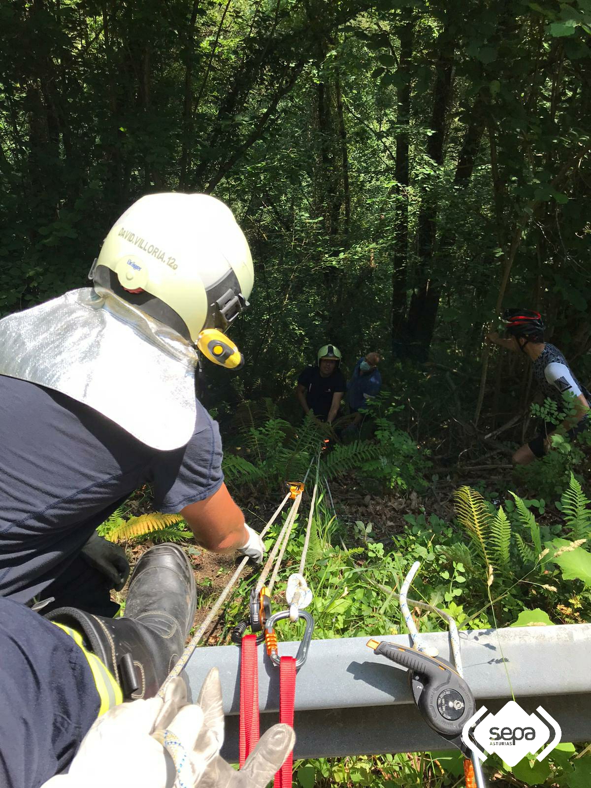 L’home foi rescatáu polos bomberos del llugar onde cayera. Tanto pa poder aportar a él como pa la so evacuación tuvieron que montar un sistema de polipastu pa, finalmente, sacalu inmovilizáu en camiya hasta la carretera onde esperaben los servicios sanitarios. La sala del 112 Asturies recibió l’avisu a les 13.00 hores. Na llamada señalaben qu’un ciclista cayera por un terremplén d’unos 20 metros. La Sala 112 del SEPA movilizó a los bomberos y pasó l’avisu al SAMU qu’unvió los medios yá citaos. Tamién informó a la Guardia Civil.