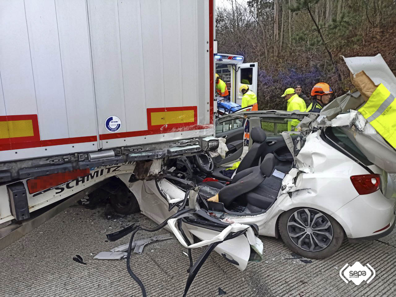 Dos persones resultaron mancaes, una de calter grave y otra leve, nun accidente de tráficu nel que se vieron implicaos un turismu y un camión na A-66, al altor de puntu kilométricu 13, en dirección Xixón, en Serín.