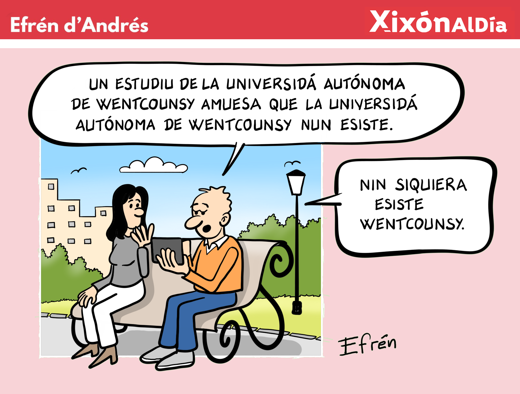 Entamu Les viñetes d'Efrén Universidá de Wentcounsy Les viñetes d'Efrén Universidá de Wentcounsy Por xixonaldia - 03/09/2025 0 76 FacebookTwitterWhatsAppTelegram Artículos venceyaosMás del autor Turnu El Solarón L’edificiu de Tabacalera 5,430SiguidoresMe gusta470SiguidoresSiguir290SiguidoresSiguir Últimes noticies Les dos sedes de la escuelina Carbayoninos, n’Uviéu van abrir n’ochobre 02/10/2025 Turnu 01/10/2025 ADAE reclama una organización xusta y n’igualdá pal enseñu del asturianu nes EOI 01/10/2025 El Principáu empecipia mañana la segunda fase del programa de bonos de descuentu pal pequeñu... 30/09/2025 Ramón Tuero acusa al gobiernu de debilitar el Plan de Normalización Llingüística 25/09/2025